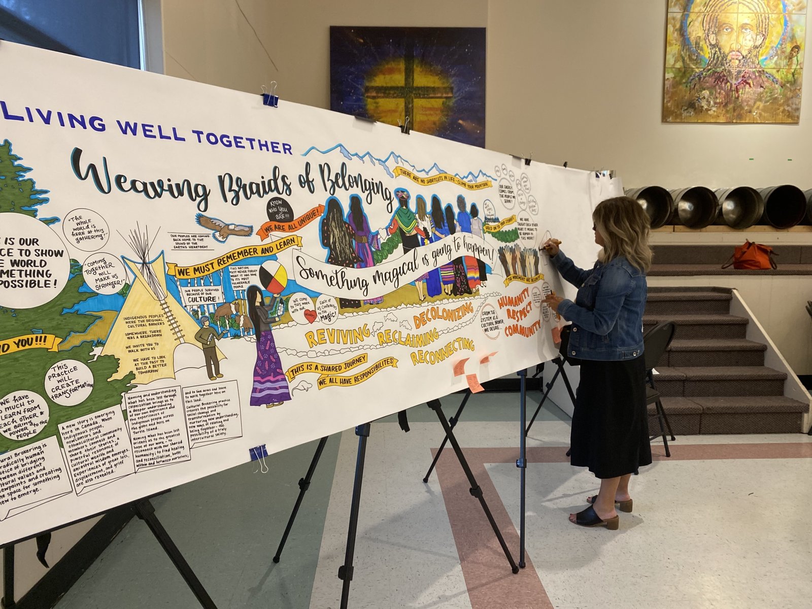 I am a graphic recorder and lettering artist who brings conversations to life through large-scale visual storytelling and expressive lettering. With a background in education and facilitation, I specialize in capturing key ideas in real time using hand-drawn visuals and calligraphic text. I work in styles such as Neuland hand, brush lettering, and sign painter-inspired scripts—blending the precision of calligraphy with the dynamic nature of live graphic recording. Based in Treaty 7 territory, I travel widely to support organizations, including non-profits, governments, and Indigenous communities, helping people see their thinking and dialogue take shape in meaningful ways.
