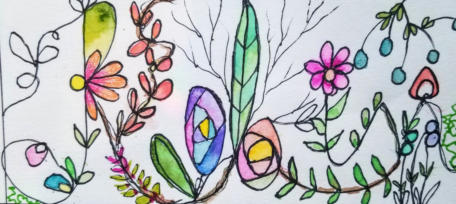 I love teaching watercolour - it can be used in so many ways - backgrounds for your letters, drawing letters with a brush, filling nibs with beautiful colours, etc. I also love using line to design my work. I encourage students to find their own design style, draw words and shapes and then add watercolour.