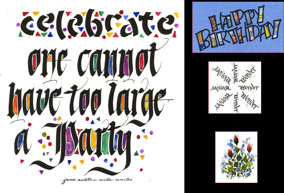 I teach a variety of lettering styles such as: Italic, Uncial, Blackletter, Versals, Foundational, Roman Capitals, Decorated Capitals, Flourishing, Illumination, Filigree and more. I like to use many kinds of tools, from broad-edged and pointed pens to flat and pointed brushes, to apple pens on the iPad. Commissioned work I do includes cards, invitations, certificates, and art pieces.